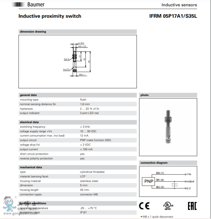 Baumer 堡盟 IFRM 05P17A1/S35L-電感式接近開關 可開增票 |