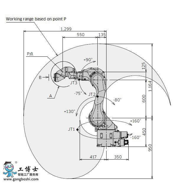 是一款具有φ50mm中空手腕的小型涂裝機器人,可對應小型旋杯。 管線內置,可輕松構建配管方案。 機身重量200kg以下,左右對稱,橫向面積小,可以在狹小現場進行涂裝作業。