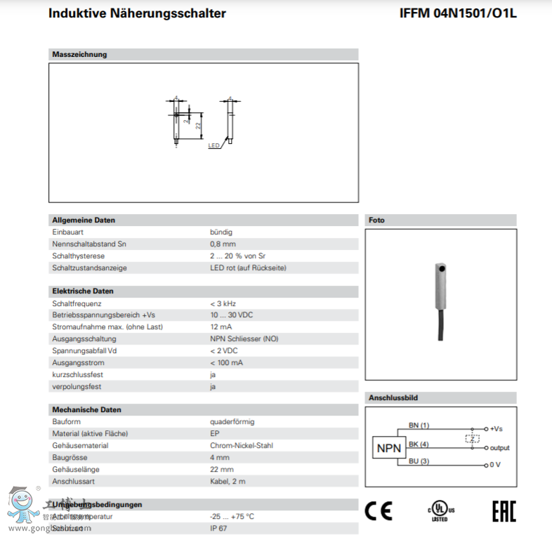 Baumer 堡盟 IFFM 04N1501-O1L-電感式接近開關 可開增票 |