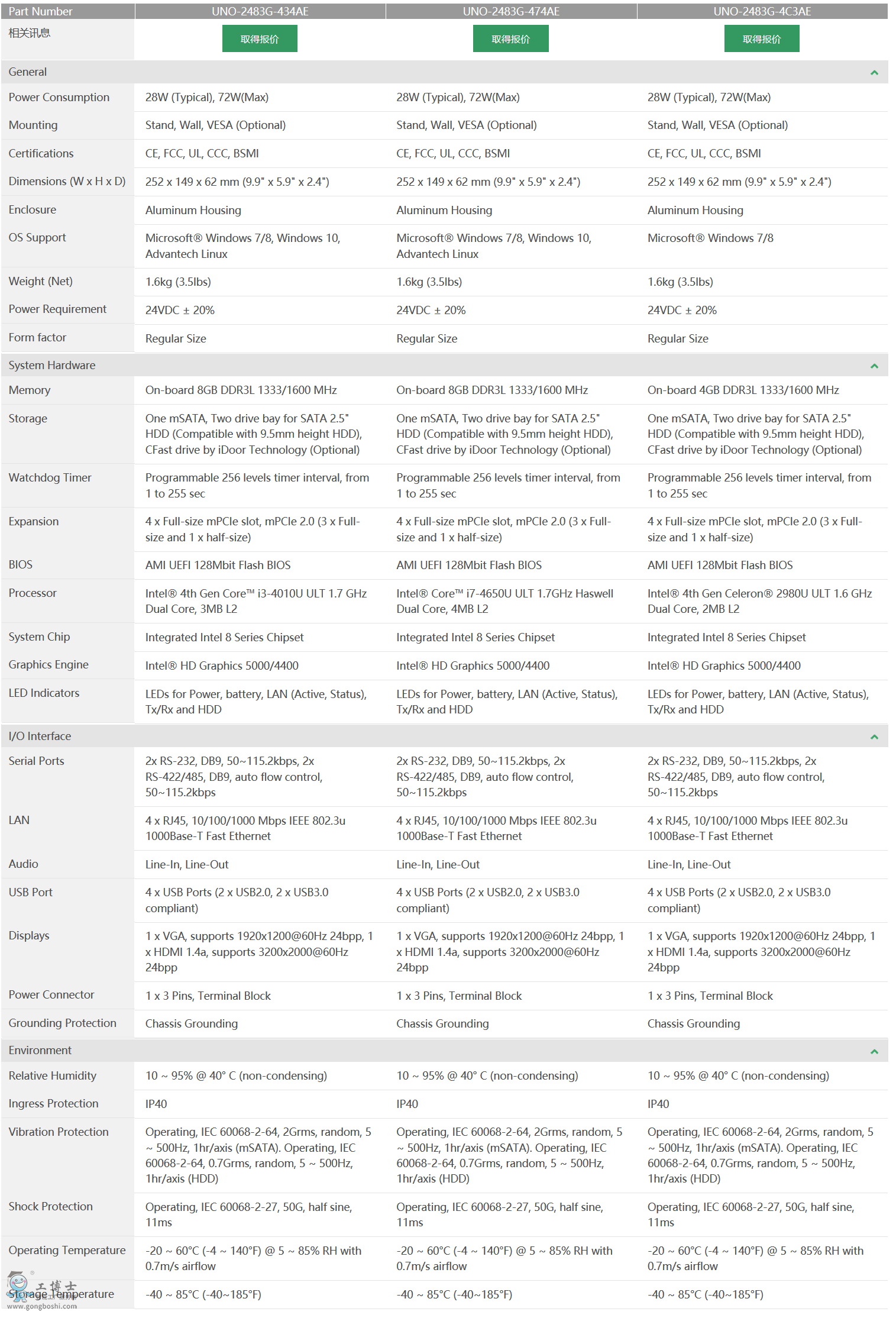 研華科技 嵌入式無風扇工控機 UNO系列 UNO-2483G i7/i3/Celeron處理器