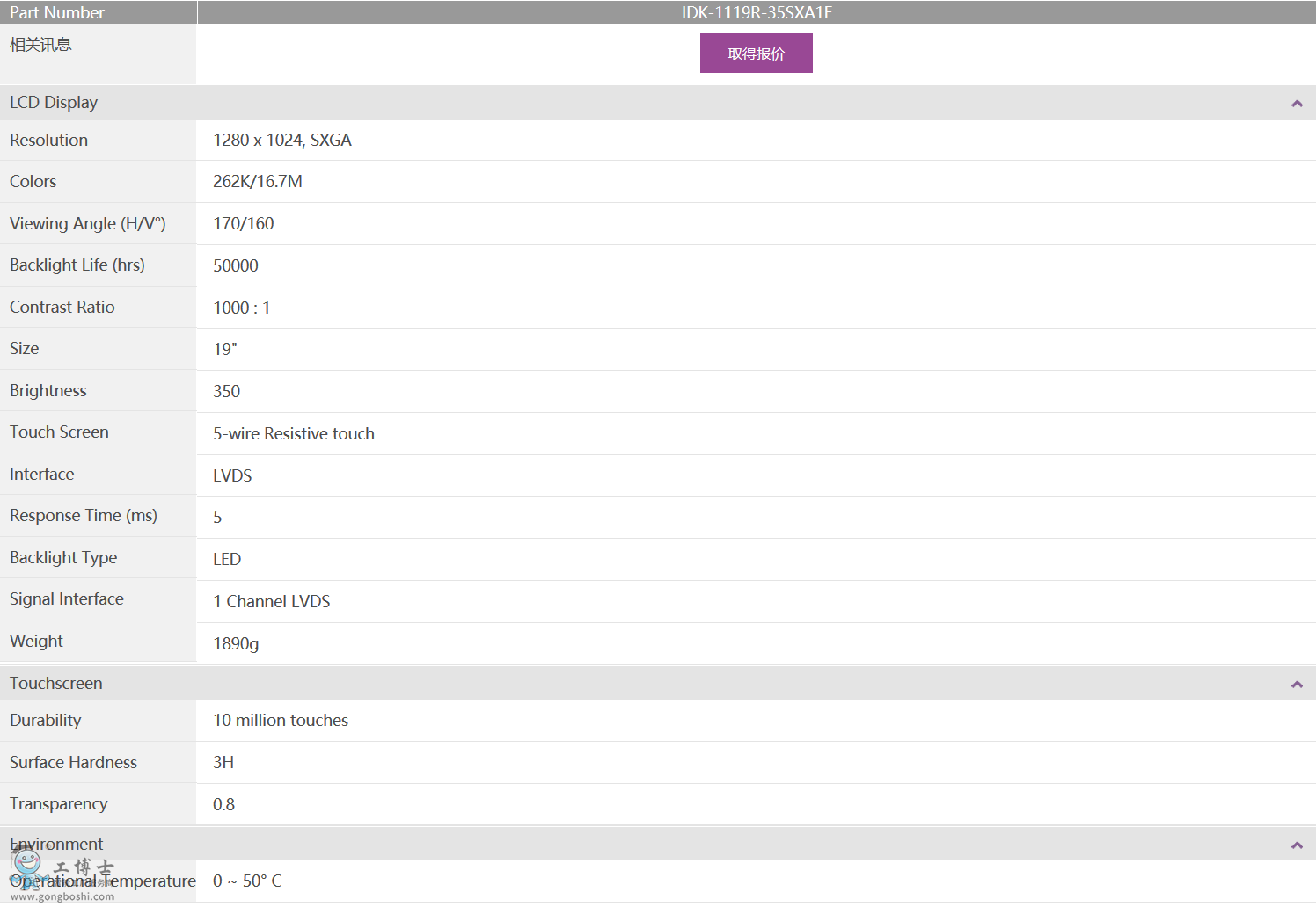 19°液晶屏支持 1280 x 1024 像素和寬工作溫度 (0 ~ 50°C) |