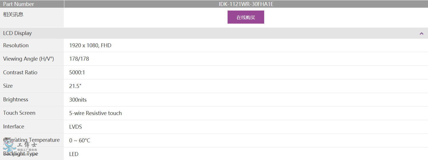 顯示參數: 21.5° LCD 支持 1920 x 1080 像素和寬工作溫度(0 ~ 60°C)