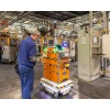 MiR 機器人只要將整個底部滑板車脫開,便可將箱中的材料移動到相應部件的裝配線,并在返回時再取一個空的滑板車,將其運送至倉庫,后再回到等待位置