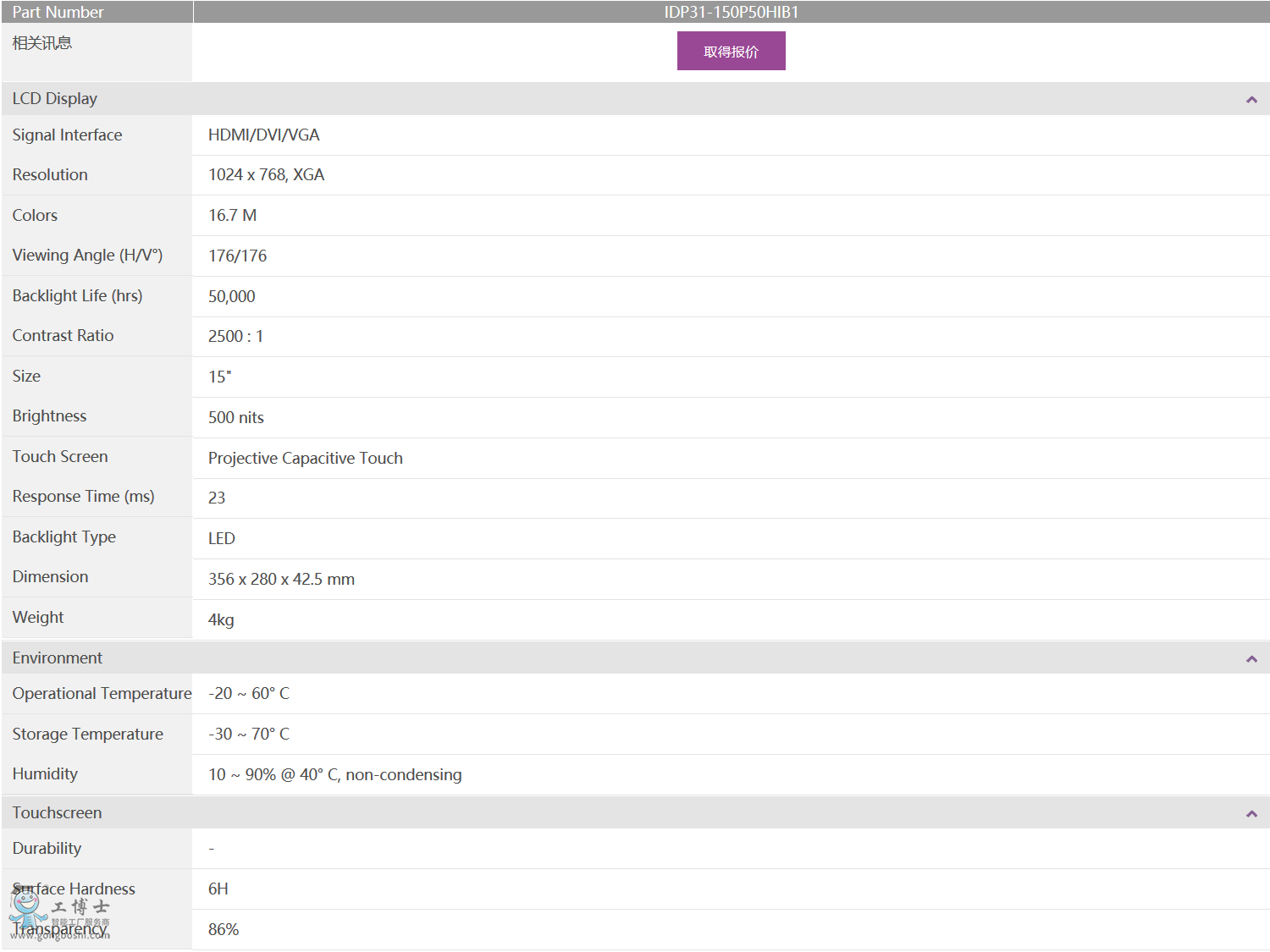 研華工控機 專業級純平觸控 IDP31-150 15" 工業級顯示器 |