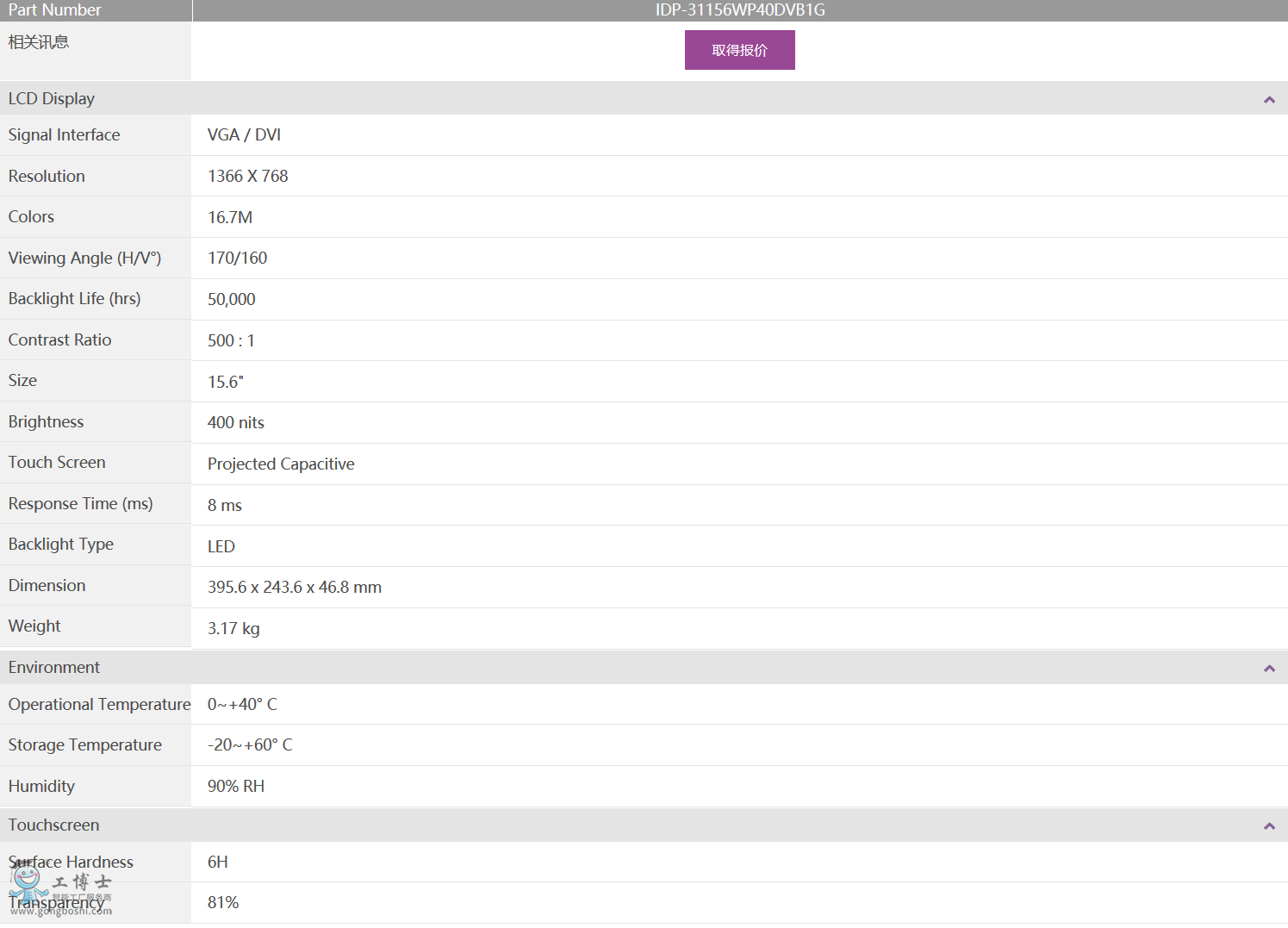 屏幕素質: 15.6” LCD面板,帶LED背光燈,使用壽命更長