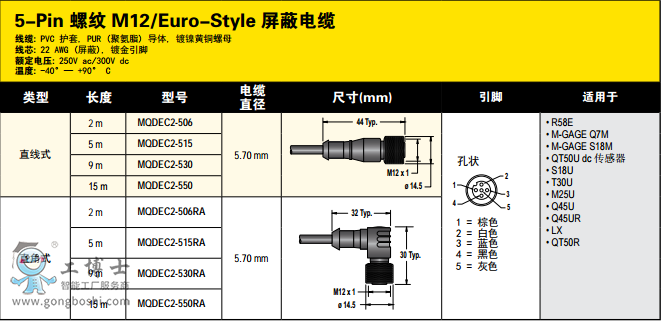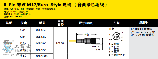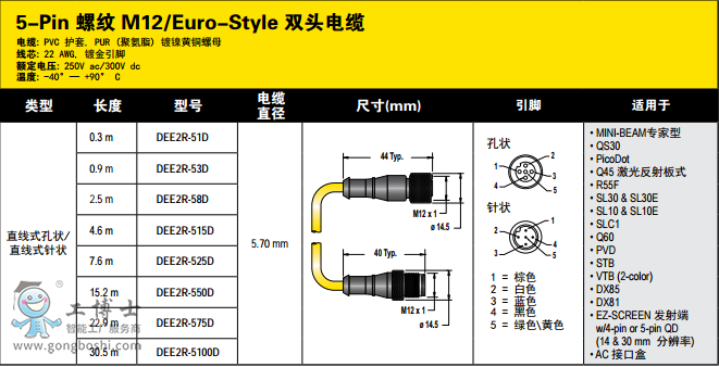 邦納傳感器連接線DEE2R-575D 現貨 22.9M 開專票
