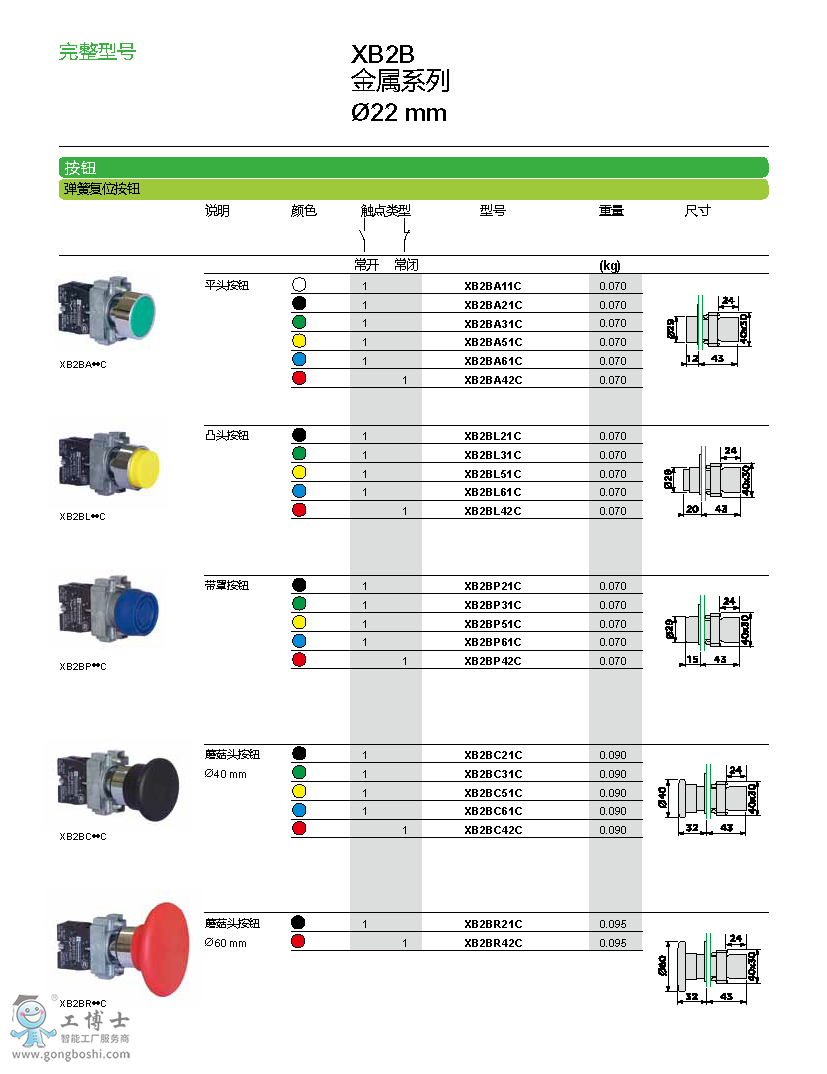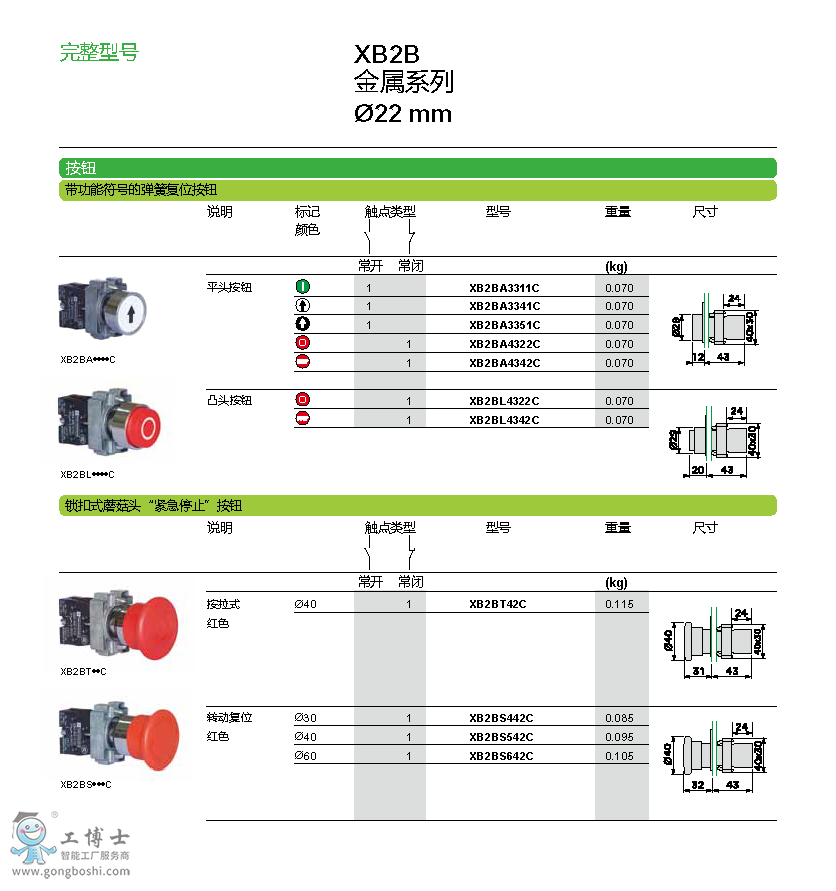 XB2BA42C 紅色 施耐德 XB2B平頭按鈕(ZB2BZ102C+ZB2BA4C)