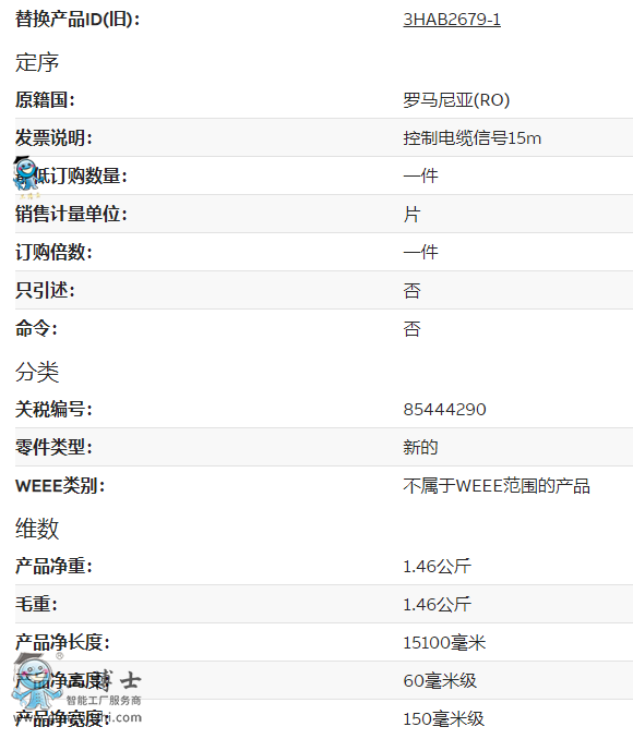 ABB機器人配件 3HAC2530-1 編碼器SBM通信電纜