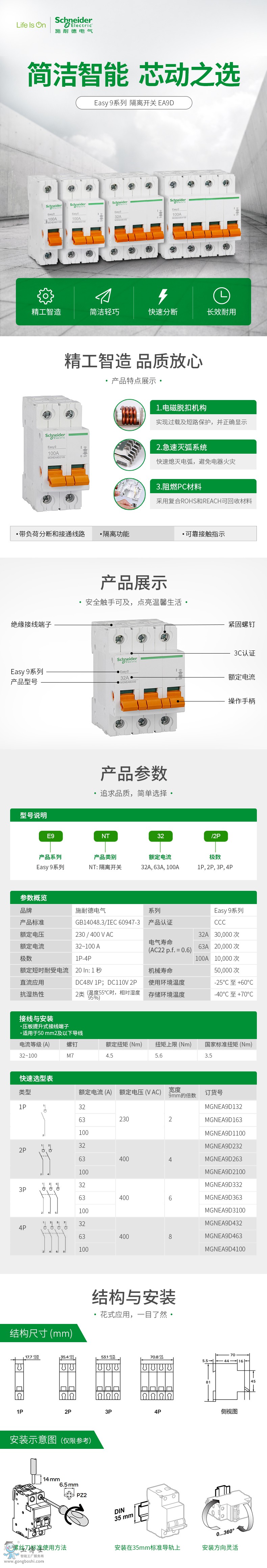 EA9D-INT125 32A/2P 施耐德MGNEA9D隔離開關