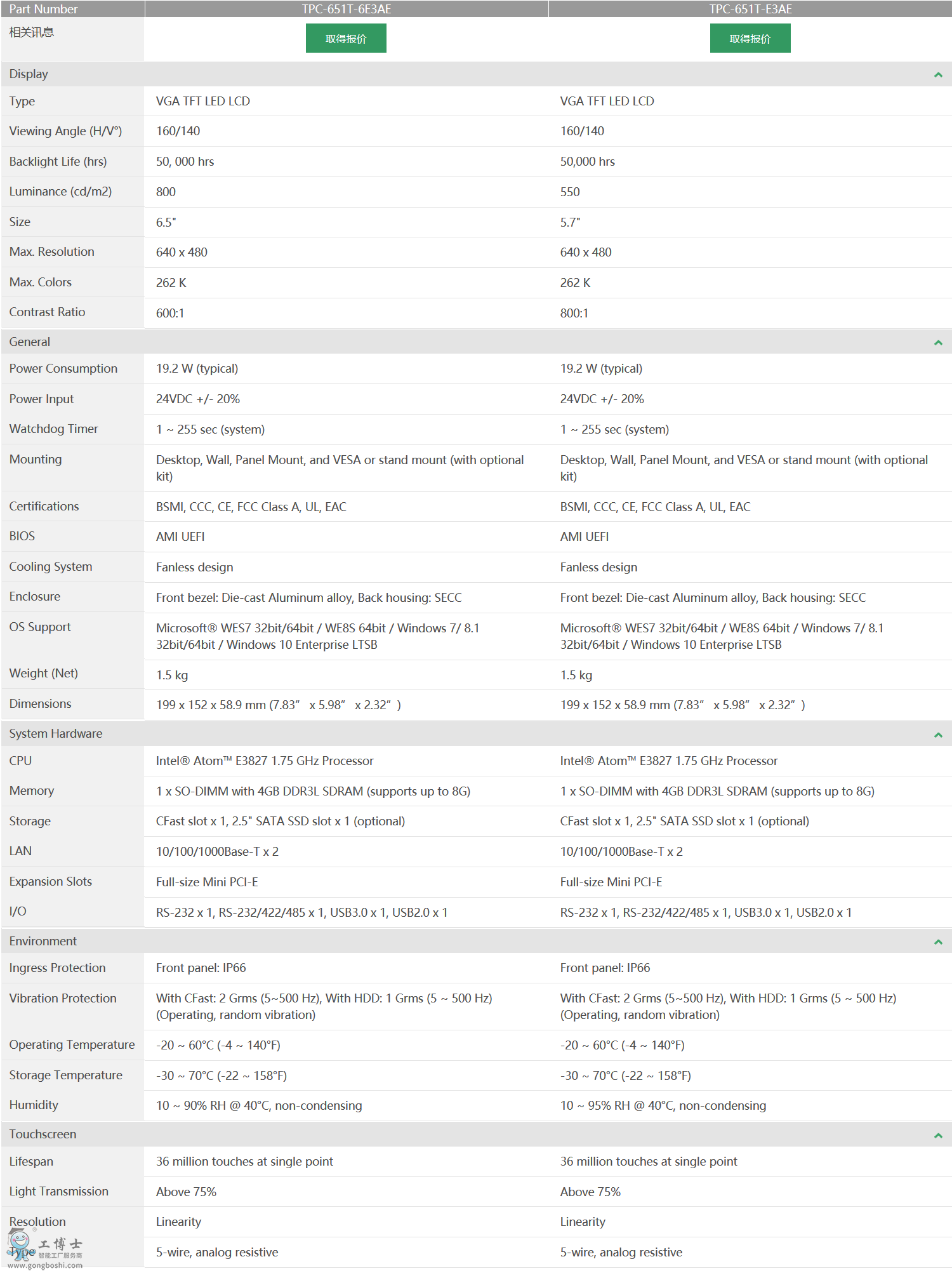 型號(hào): TPC-651T