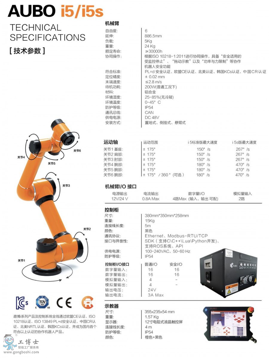 遨博智能是致力于輕型協作機器人研發、生產和銷售的國家高新技術企業。旨在以模塊化、開放性的輕型協作機器人為基礎,融合工業互聯網和工業大數據的設計理念,開拓***的智能工業生產遨博I系列協作機器人的代表性產品AUBO-i5已符合多項國家國際安全標準,i3協作機器人可應用于3C、金屬加工、食品、醫藥、科研培訓物流,AUBO-i7重點解決了金屬加工領域的一些應用需求, AUBO-i10是負載超大的遨博協作機器人,遨博具有強勁的性價比優勢和市場競爭力。 - 無需安裝防護欄,可與人近距離作業;- AUBO-i5協作機器人可勝任末端負載為5kg以下的自動化作業;- 臂展為1008mm,可滿足工作范圍在886.5mm以內的作業任務;- i5協作機器人可應用于3C、汽車零部件、金屬加工、食品、醫藥、物流等行業,實現上下料、裝配、鎖螺絲、噴漆、焊接等應用.