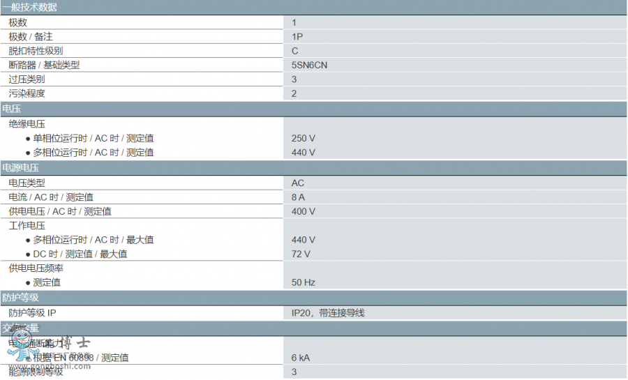 5SN6108-7CN(C8 1P) 西門子 5SN6 微型斷路器