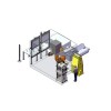 FlexWasherTM W40 系統的主清洗室設進/出料垂直門、配抓料器IRB 6640鑄造初級版機器人及固定式HPWD噴嘴。機械臂穿過進料門,從夾具臺上或預沖洗室內拾取工件。僅在工件污染較嚴重的情況下需要設置預沖洗室。