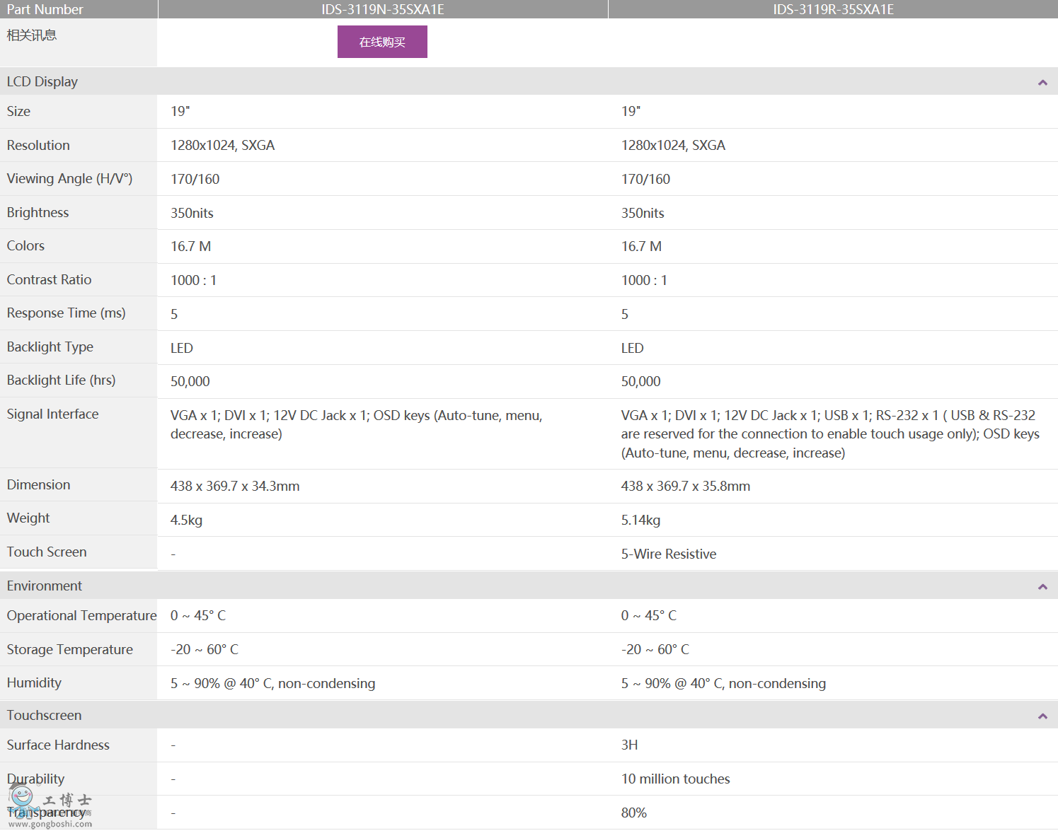 19" 1280 x 1024, VGA/DVI 雙信號接口, 超薄觸摸屏, 開放式顯示器