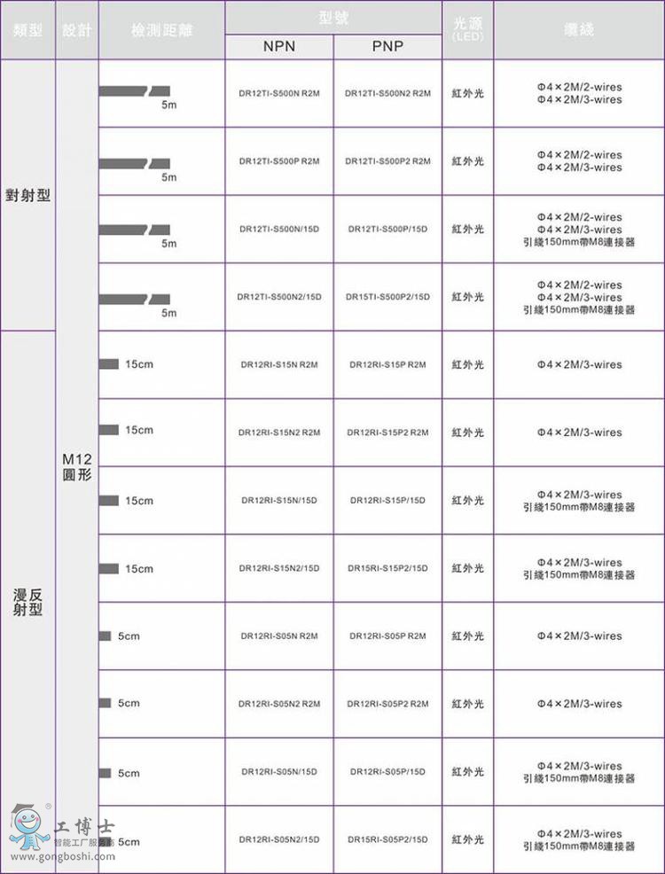 嘉準傳感器-DR18圓型光電傳感器/DR12圓型光電傳感器/DR08/06圓型光電傳感器 |