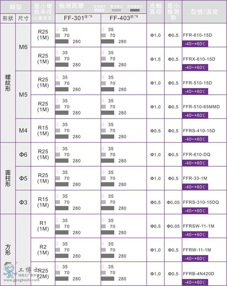 嘉準(zhǔn)傳感器FFRX-610-15D M6粗芯漫反射側(cè)視光纖管FFRX-620-15D