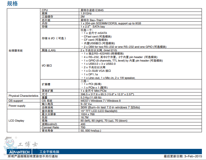 品牌:Advantech/研華 型號:PPC-3150 尺寸類型:控制臺