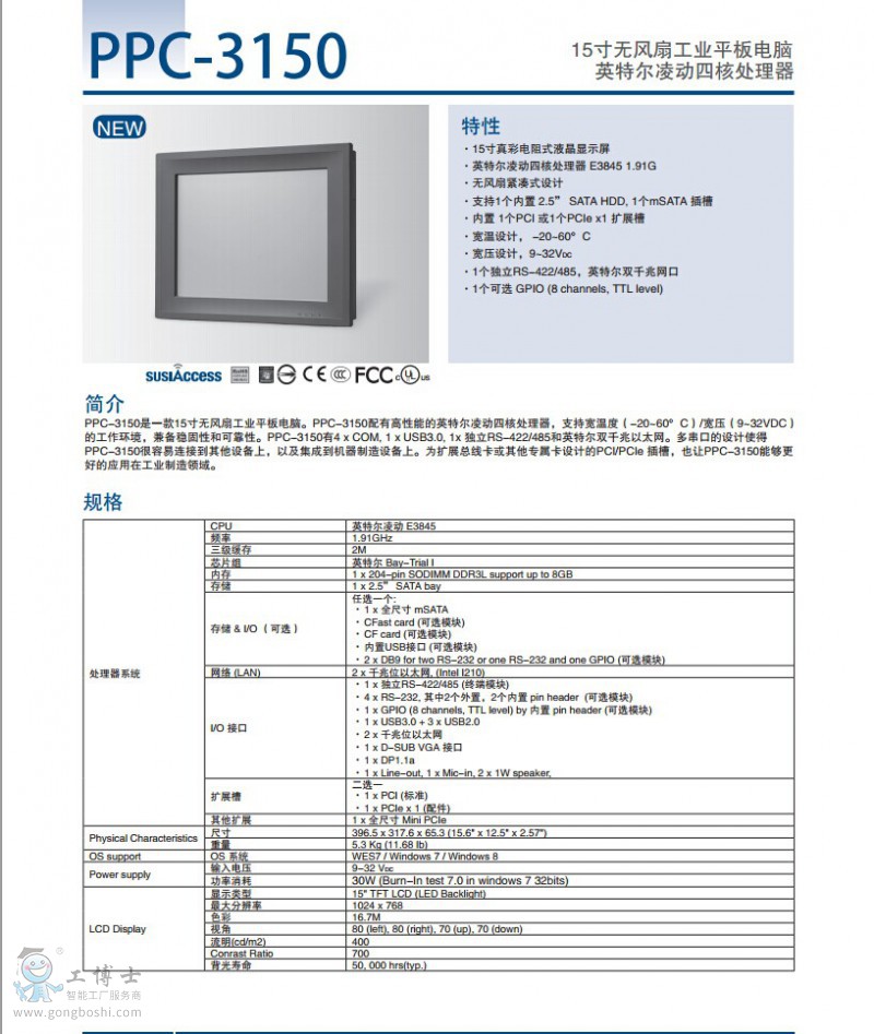 處理器: 15寸無風扇工業平板電腦,英特爾凌動四核處理器