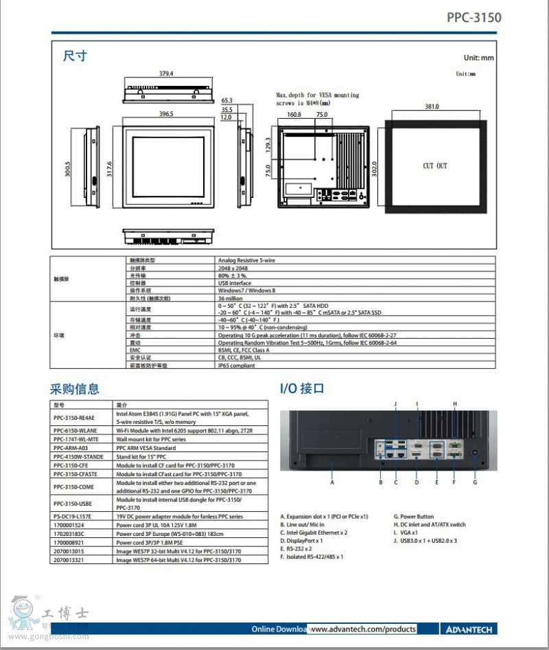 品牌:研華                                               型號:PPC-1150                                            類型:工業平板電腦一體機