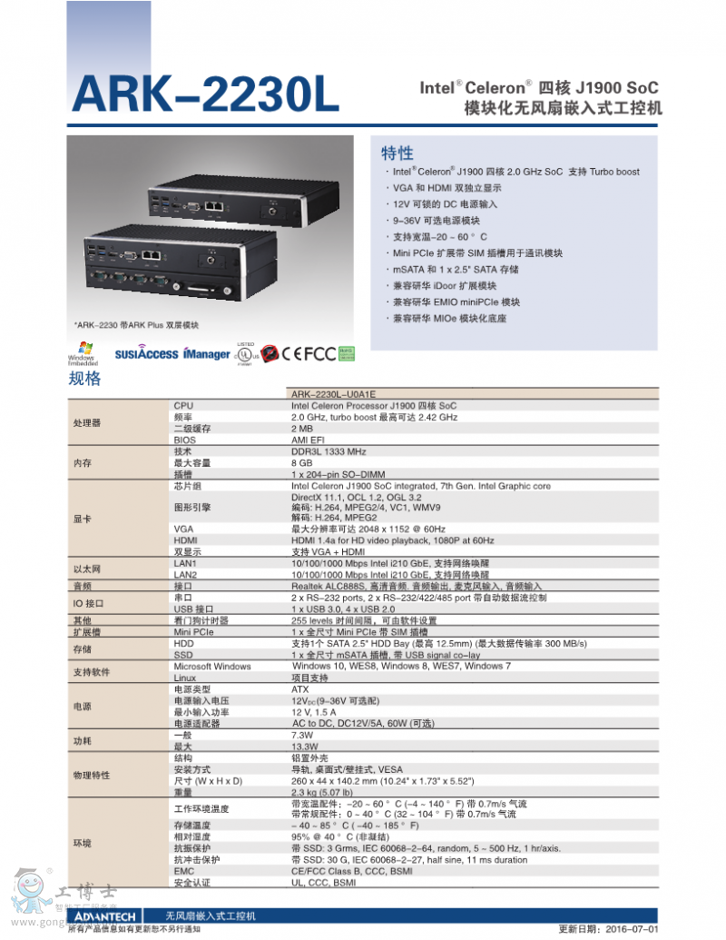 品牌: ADVANTECH/研華            型號:ARK-2230L-U0A1E            類型:無風扇嵌入式工控機