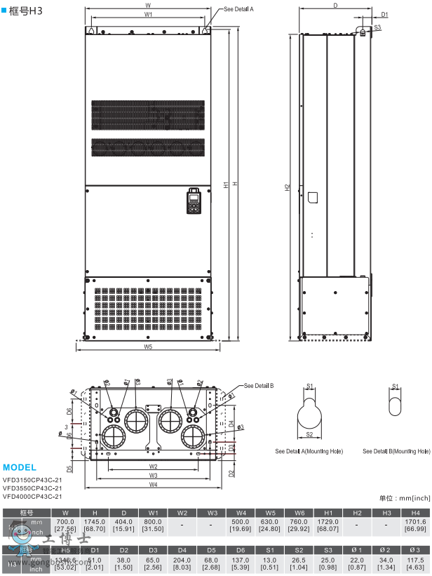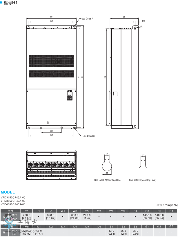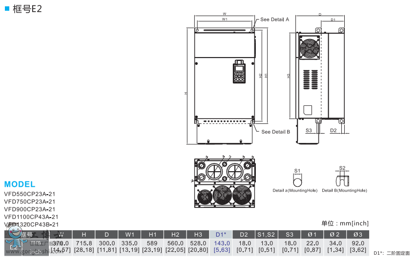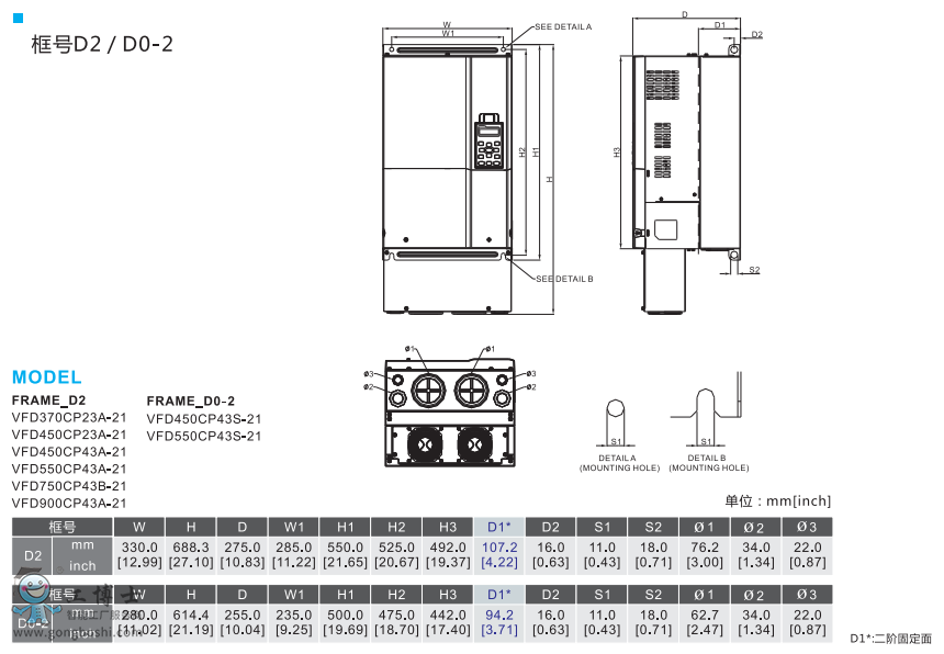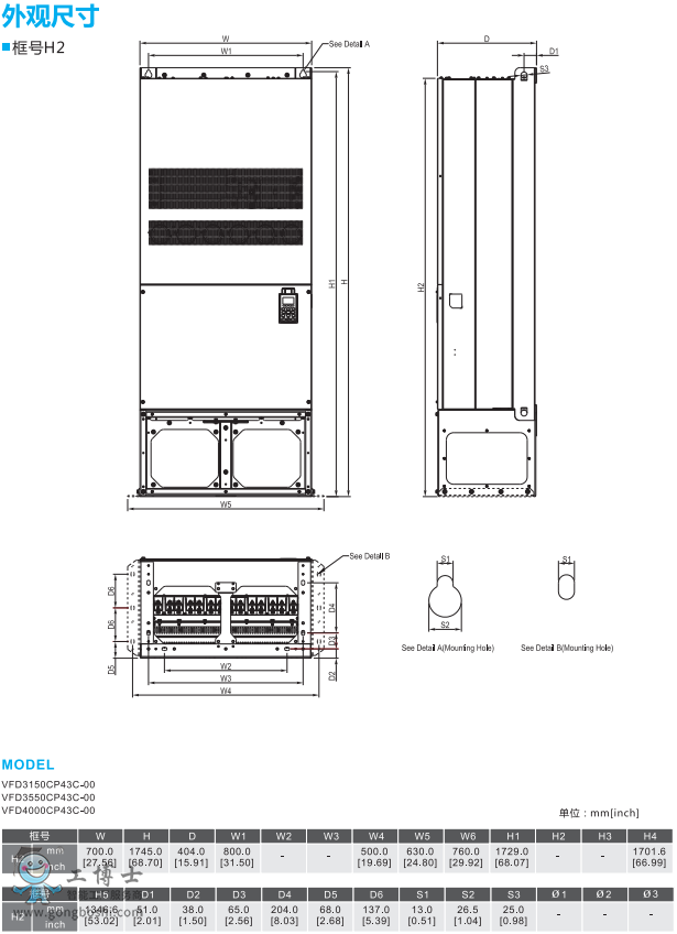 VFD2800CP43A-21臺達變頻器VFD-CP2000系列280KW電壓380V |