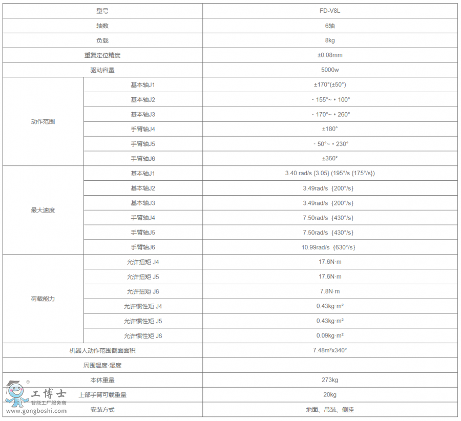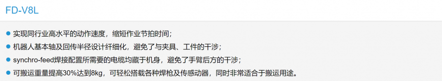 OTC機器人FD-V8L 負載 8kg 工作區域 2006mm