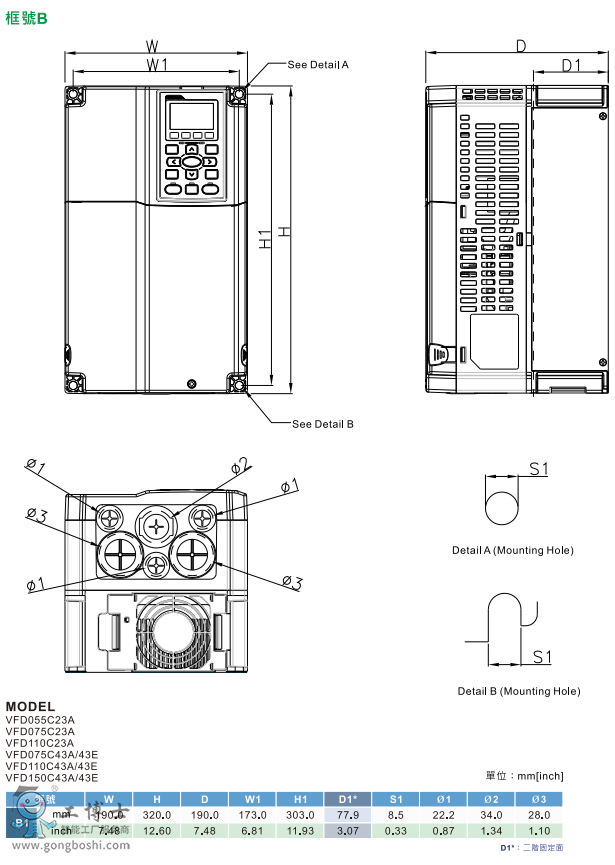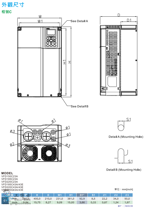 VFD750C43A臺達變頻器VFD-C2000系列功率75KW電壓三相380V