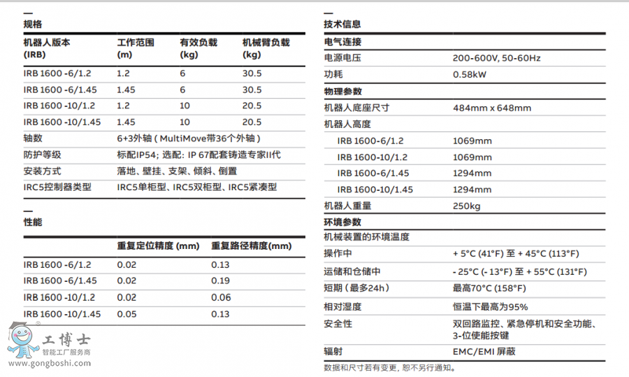 ABB工業機器人IRB 1600-6/1.2