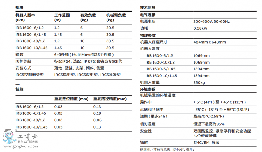 ABB工業(yè)機(jī)器人IRB 1600-10/1.45