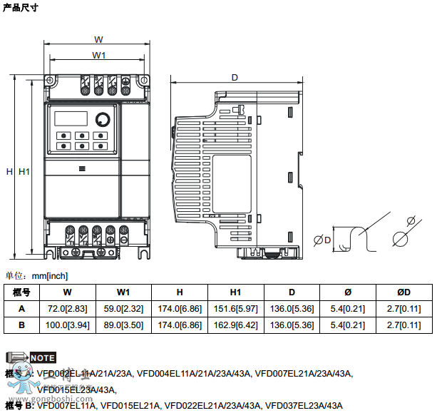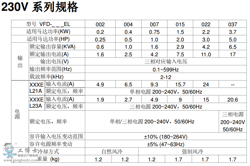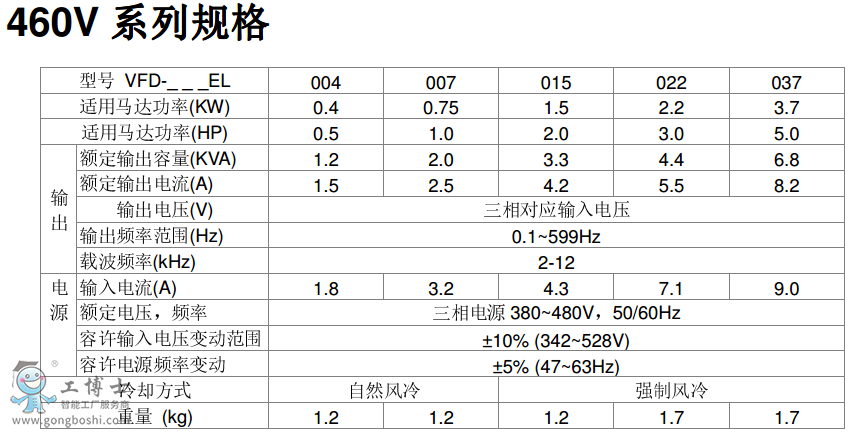 VFD007EL43A臺達變頻器VFD-EL系列功率0.75KW電壓380V