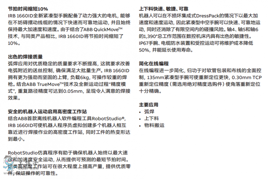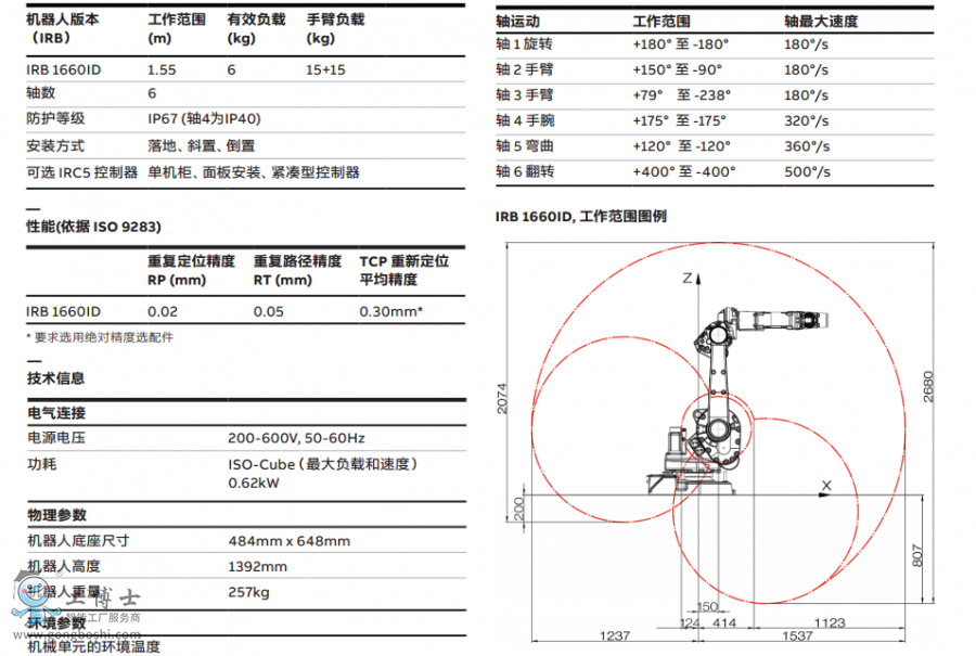 ABB工業機器人IRB 1660ID-6/1.55