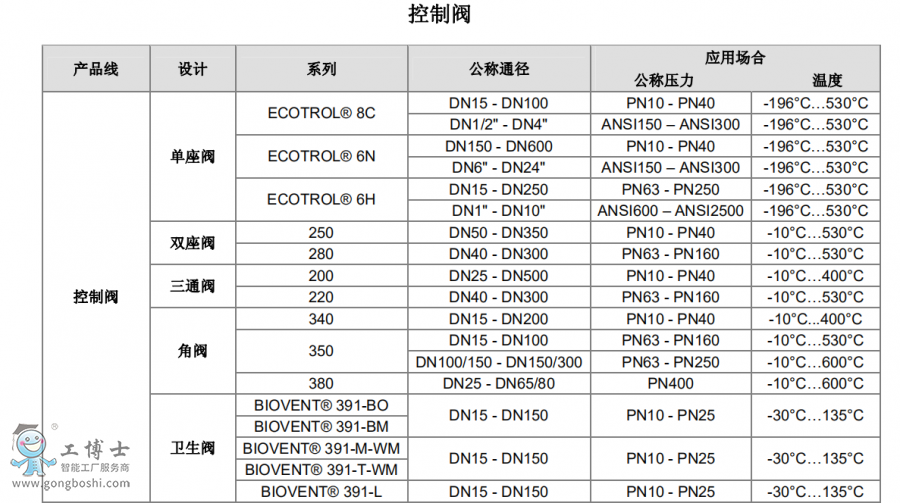 其產品范圍覆蓋了主要的ARCA控制閥產品如:單座閥、雙座閥、三通閥、波紋管密封閥、隔膜閥、蝶閥、切斷閥、減溫減壓閥、自立式調節閥、控制閥附件等。