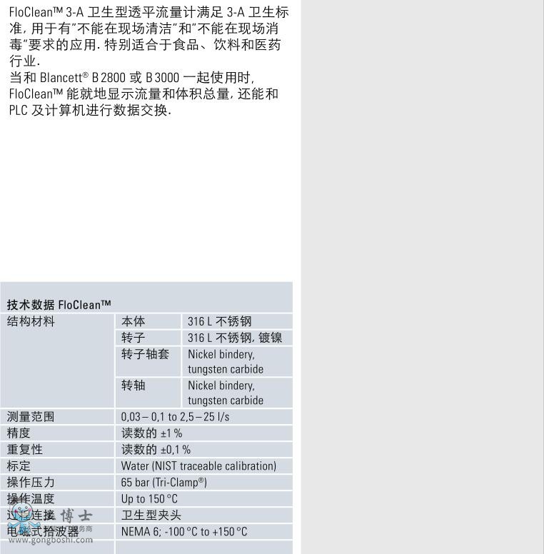 Badger Meter透平流量計(jì) FloClean 3-A流量計(jì) |