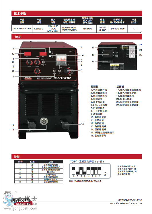 美國林肯CV 350P脈沖無飛濺氣保焊機