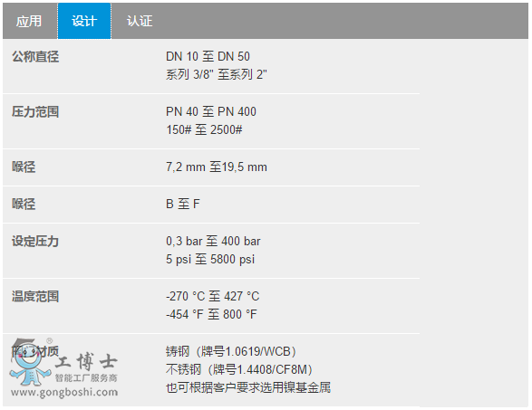 壓力范圍: PN 40 至 PN 400 150# 至 2500#