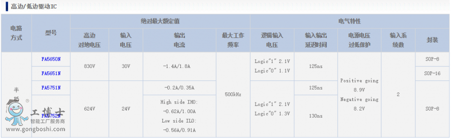 富士電源控制IC 高邊/低邊驅動IC FA5650N |
