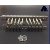 2、結構:鋼絲繩隔振器是由鋼絲繩繞成螺旋狀并固定在沿螺母布置的兩塊金屬板之間制作而成的,它的剛度與阻尼取決于鋼絲繩的直徑、股數、圈數及纏繞方式和尺寸.它是一種具有非線性特性和干摩擦阻尼的新型隔振器,采用多股鋼絲按一定方向纏繞而成的鋼絲繩作為彈性元件,具有明顯的遲滯特性,其能量耗散來源于鋼絲間的摩擦、擠壓、滑移。