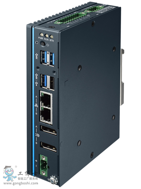 DIN-Rail Controller with Intel® Atom® E3940 CPU, 2 x LAN, 2 x COM, 3 x USB 3.0, 1 x USB 2.0, 2 x DP 1.2, 8 x DI, 8 x DO, 1 x M.2, 1 x mPCIe, TPM 2.0