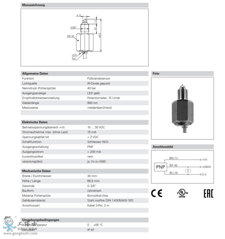 Baumer堡盟液位傳感器FFAM 16PTD1002/L開增值票傳感器 |
