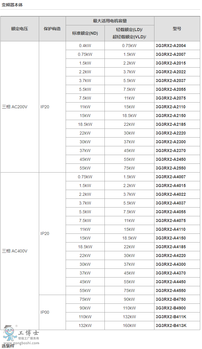 3G3RX2-A2004 簡介:OMRON/歐姆龍高性能通用型變頻器,三相AC200V,重載0.4KW,輕載0.75KW,防護(hù)等級IP20。
