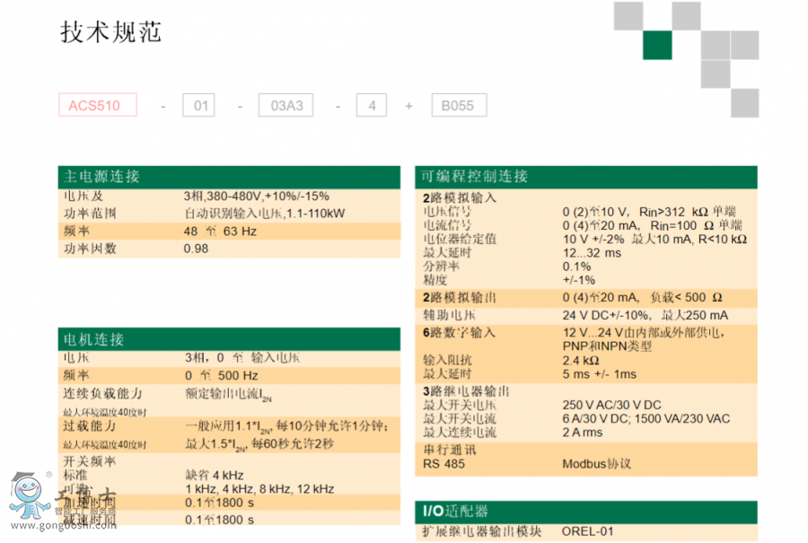 ACS510的特點(diǎn)是:***相互配合風(fēng)機(jī)水泵應(yīng)用、循環(huán)系統(tǒng)軟起、CE認(rèn)證、跨越方式、用于減少諧波電流的發(fā)明***、多點(diǎn)U/F曲線等