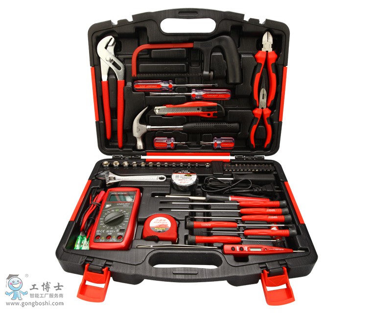 52件套電訊工具組套包含工具:1-重型歐式活扳手6“12-6.3mm系列6角套筒4,4.5,5,5.5,6,7,8,9,10,11,12,13mm1-6.3mm系列旋具頭接頭4-尖嘴鉗6“,斜嘴鉗6“,水泵鉗10“,6.3mm系列旋柄4-一字螺絲批6x38,6x100mm,十字#2x38,#2x100mm3-一字微型塑柄螺絲批2.0x75,3.0x100,4.0x150mm3-十字微型塑柄螺絲批PH00x75,PH0x100,PH1x15013-6.3mm系列25mm一字旋具頭4,5.5,6.5m,十字#1,#2,#3,六角3,4,5,6mm,花型T10,T15,T203-塑柄美工刀18mm,卷尺3mx16mm,數顯式萬用表3-電工絕緣膠帶,外熱式長壽電烙鐵30W,鋼柄羊角錘8oz2-簡裝焊錫絲17g,數顯測電筆3-迷你尼龍柄鋸弓6“、迷你鋸條6“、尖頭不銹鋼鑷子外徑尺寸:420x315x80mm電訊維修專用工具組,適用于工礦、物業、家居日常電器維修作業。