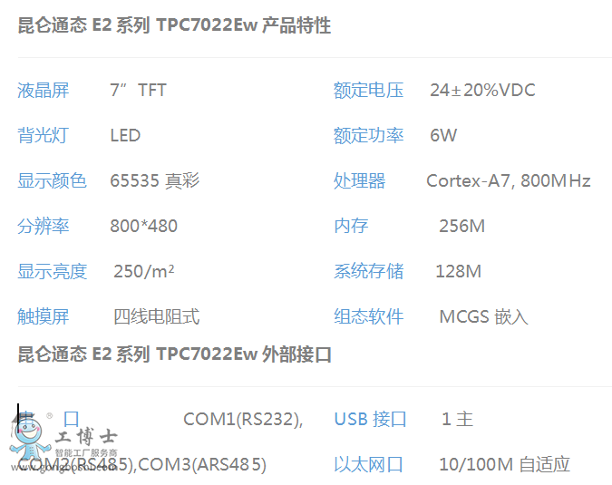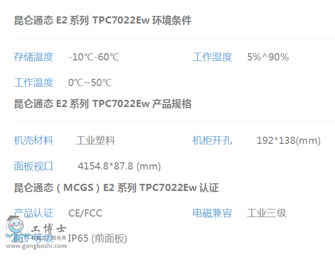昆侖通態MCGS觸摸屏E2系列TPC7022Ew|支持編程調試|售后維修 |