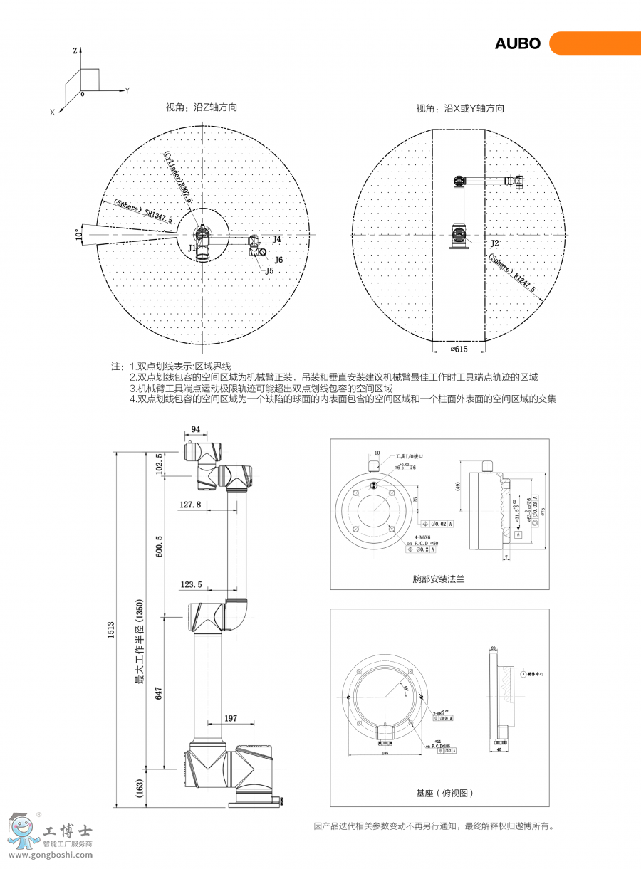 - 臂展為1513mm,可滿足工作范圍在1350mm以內的作業任務