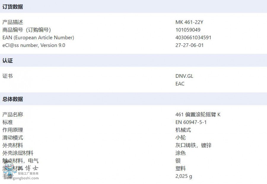 MK 461-22Y施邁賽SCHMERSAL中型限位開關461偏置滾輪搖臂K系列可開增值專票