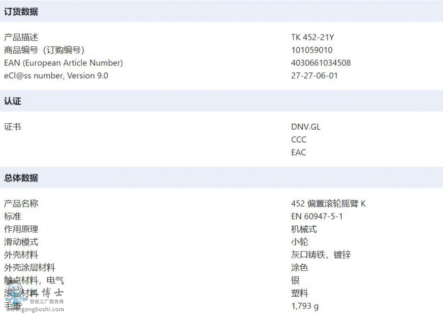 TK 452-21Y施邁賽SCHMERSAL中型限位開關452偏置滾輪搖臂K系列可開增值專票