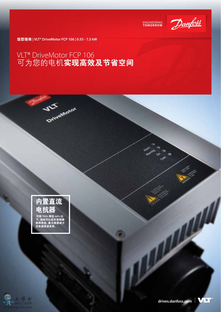 內置直流電抗器可將 THDi 減至 46% 以下,可延長變頻器使用壽命,很大限度地減少主電源的諧波負載