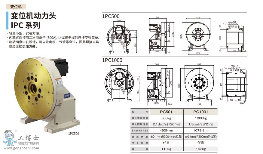 高精度:通過使用無背隙減速機,變位機反復精度可達±0.1mm(在R300的 位置);