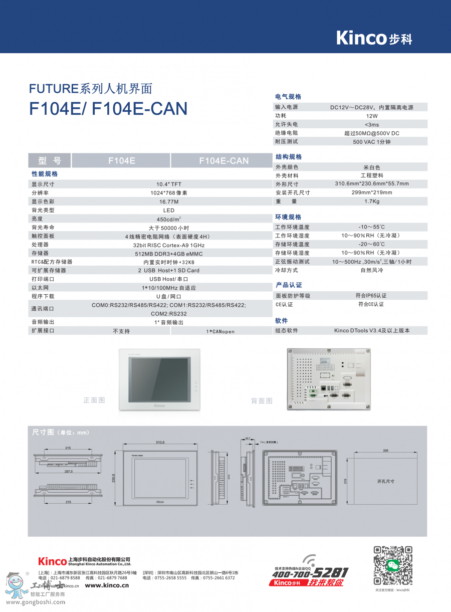 Kinco步科觸摸屏FUTURE系列F104E-CAN|支持編程調(diào)試|售后維修 |