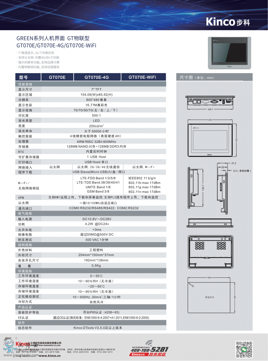 Kinco步科觸摸屏GREEN系列GT070E|支持編程調試|售后維修